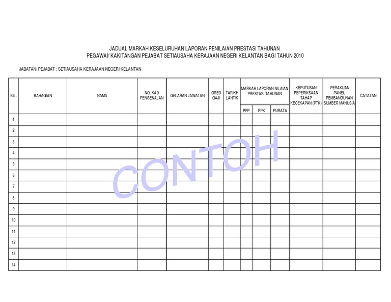 Contoh Borang Penilaian Prestasi Pekerja Jaroncxt